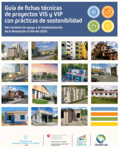 Guía de fichas técnicas de proyectos VIS y VIP con prácticas de sostenibilidad: Desarrollo técnico y gráfico de una guía de fichas técnicas de caracterización de 15 proyectos reales y sostenibles, que presenta estrategias en eficiencia energética, gestión hídrica, economía circular, gestión social y gerencia del proyecto, promoviendo proyectos de vivienda social y prioritaria profundamente conectados con su contexto natural y cultural. Esta guía busca inspirar respuestas habitacionales integrales y diferenciales frente a los desafíos de las distintas regiones del país, contribuyendo a mejorar la calidad de vida de la población colombiana y fortalecer la implementación de la Resolución 0194 de 2025. Consulta la guía: http://bit.ly/4poYBCE |